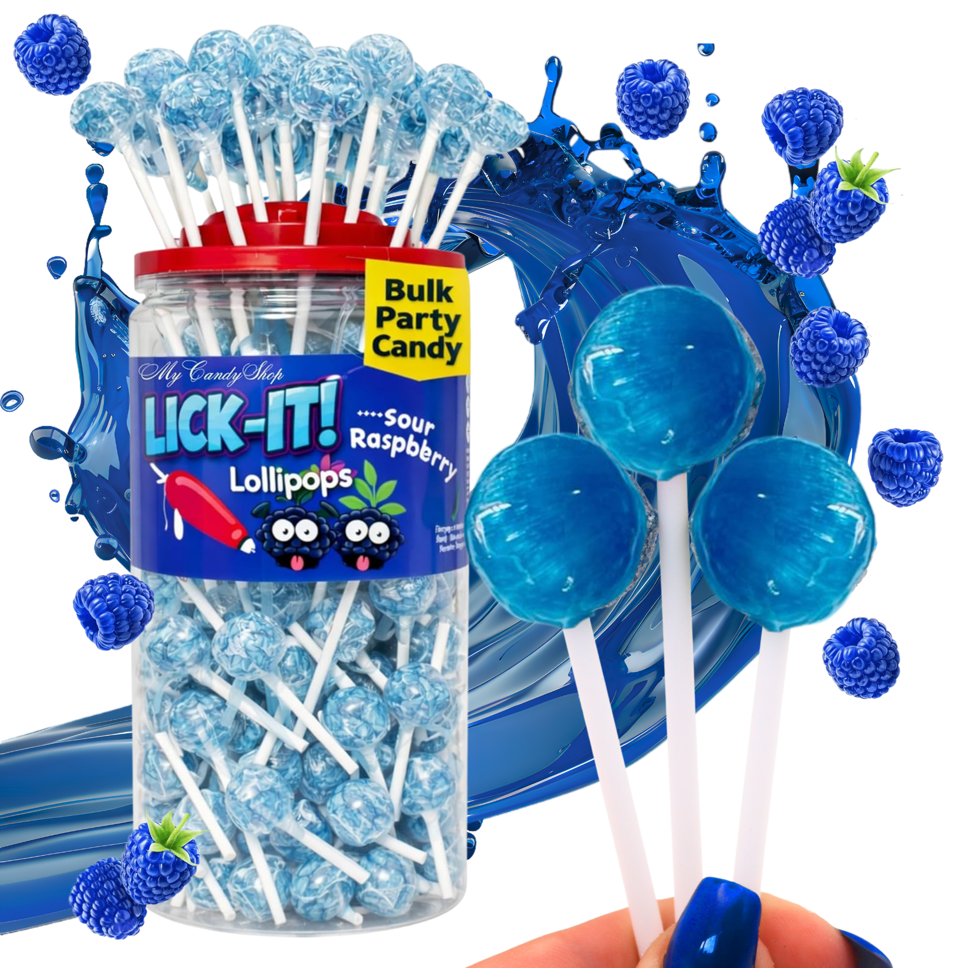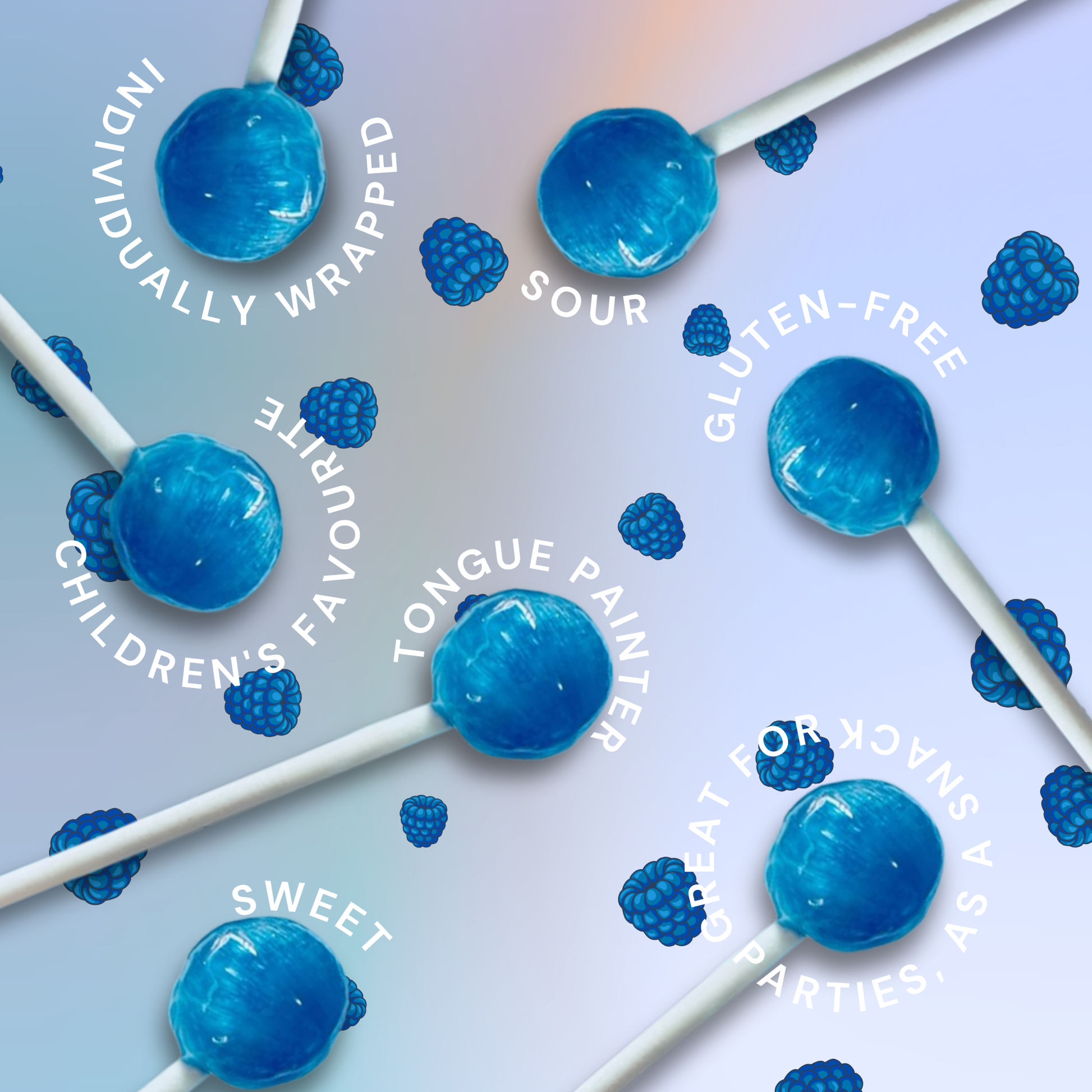 Colour Your World Blue Get ready for a tongue-tingling adventure with these blue raspberry lolly pops bulk! Each sour blue lolipop delivers an exciting burst of flavour while turning your tongue a vibrant shade of blue. For parties, these individually wrapped treats come in a convenient tub of 150 lollipops which is slightly smaller than the tub of lollipops on the market. Watch faces light up as everyone shows off their colourful tongues - it's a sweet and sour sensation that brings fun to any gathering!