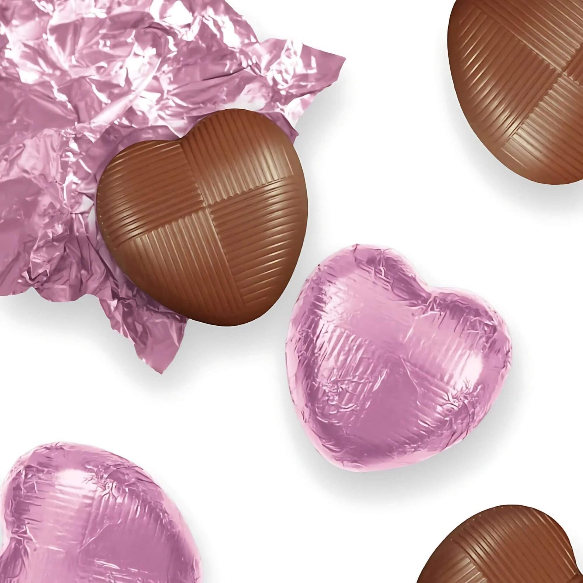 Pink Foil Milk Chocolate Hearts – 635g Bag (100 Pieces)Available in stock (42)