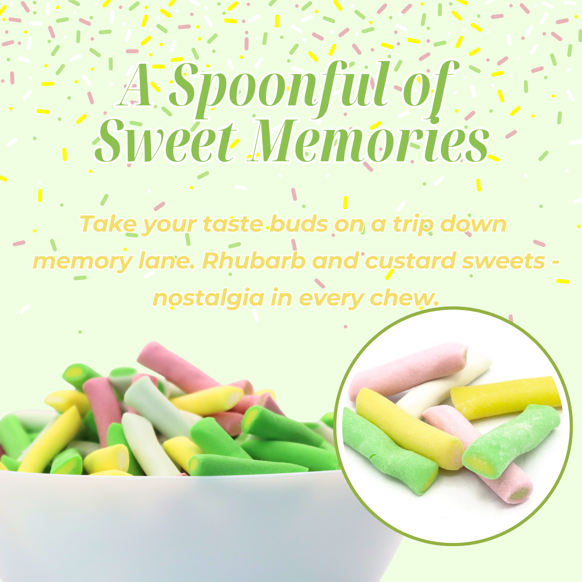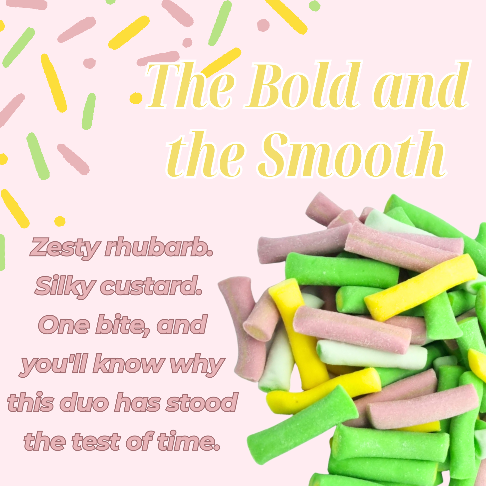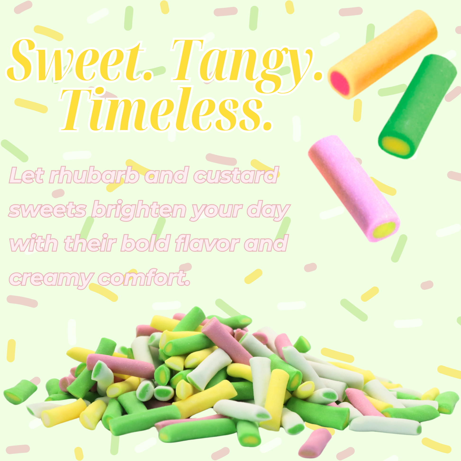 Sweet, creamy, and just the right amount of zing! Vidal Rhubarb & Custard sweets are a chewy twist on a beloved British classic. With bold rhubarb flavour and smooth custard notes in every bite, these colorful treats deliver the perfect blend of tart and sweet.